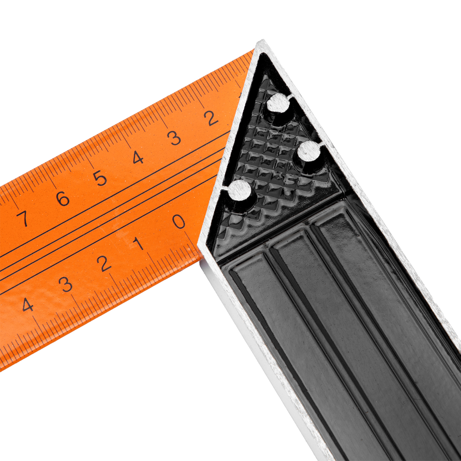 - Продуманное хранение — специальное отверстие позволяет подвешивать угольник на крючок или гвоздь.