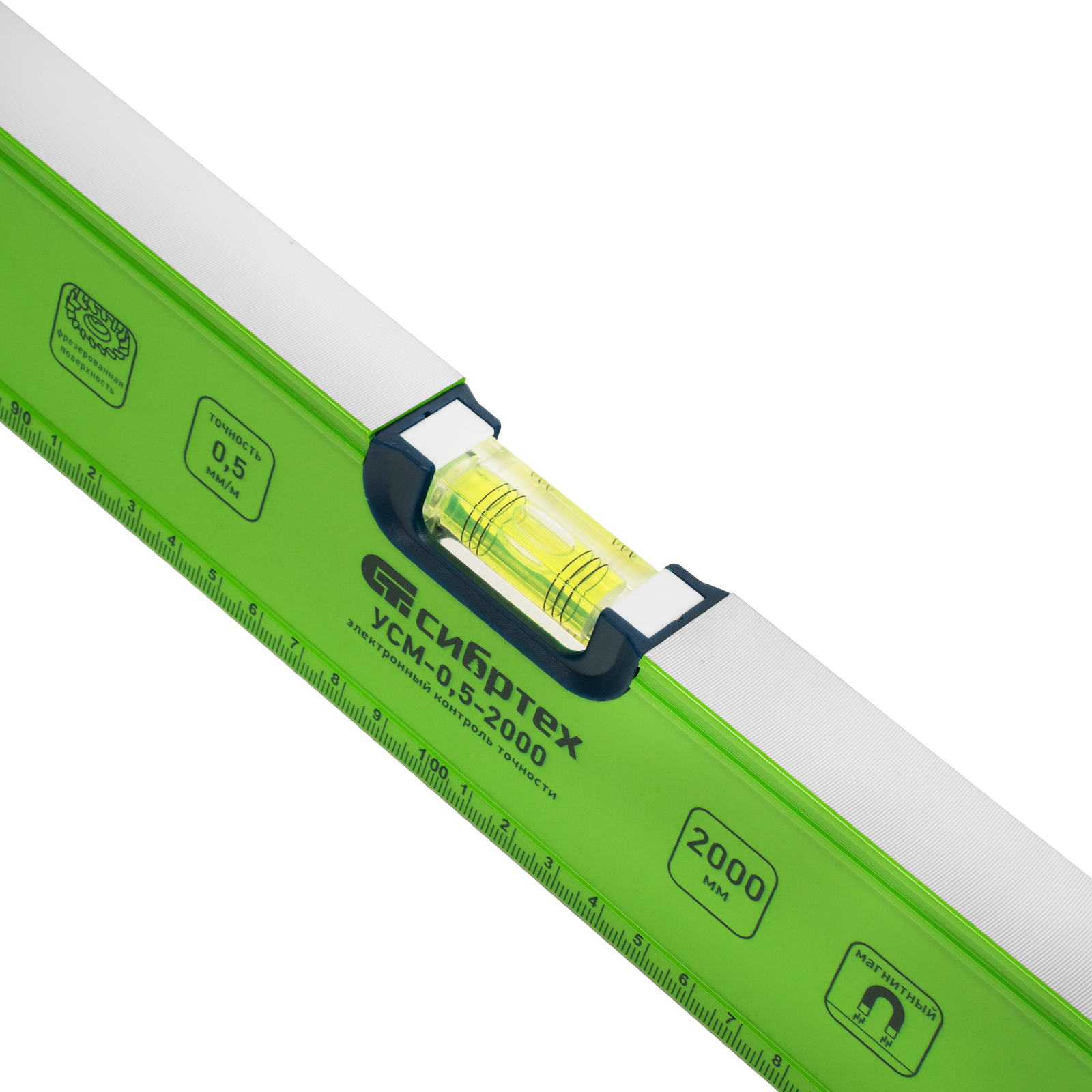 Уровень алюминиевый УСМ-0,5-2000, фрезерованный, 3 глазка, магнитный, рукоятки, 2000 мм Сибртех в Екатеринбурге