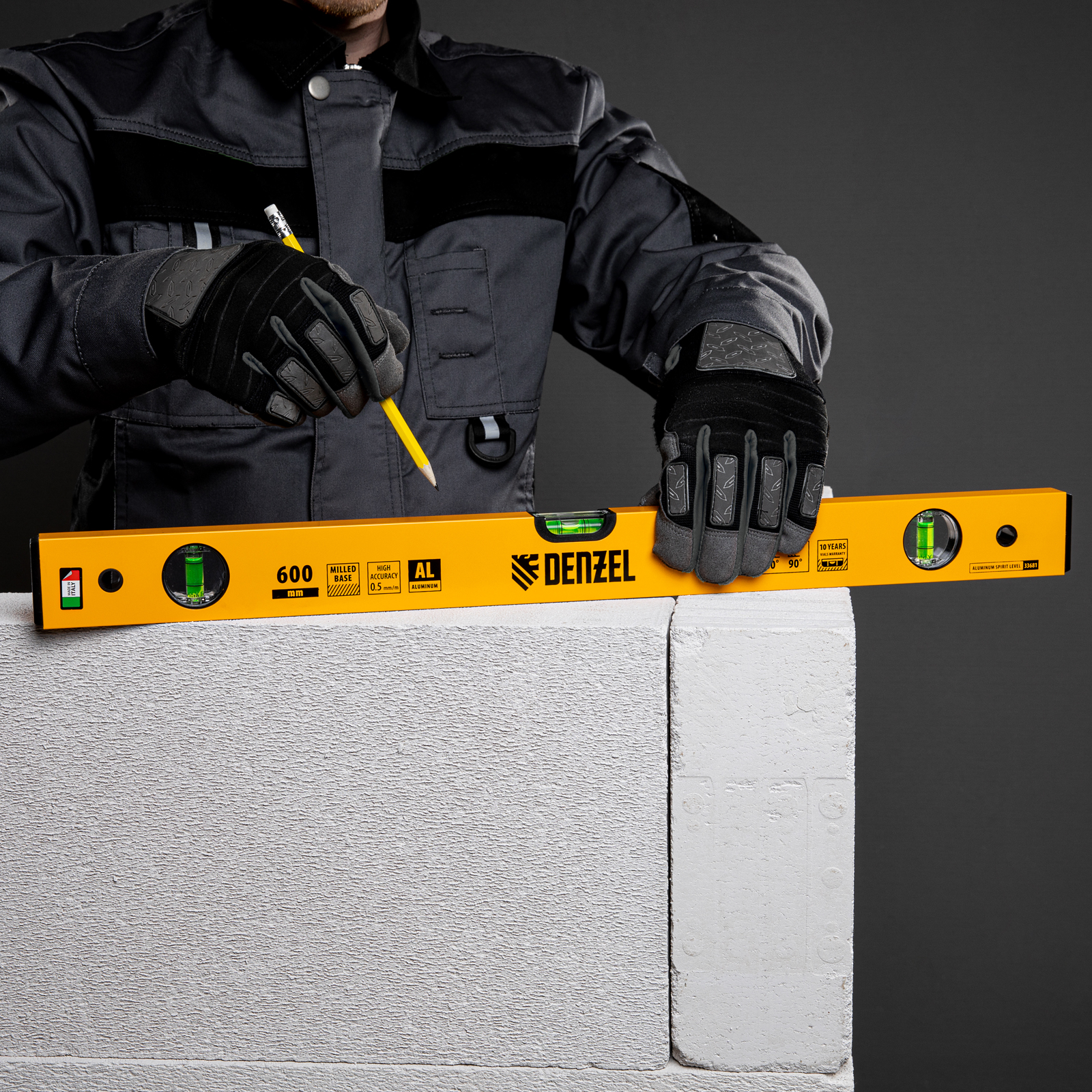 Алюминиевый фрезерованный уровень Denzel 33681 длиной 600 мм, с 3 глазками, используется для контроля вертикальных и горизонтальных плоскостей. Позволяет получить качественный результат при выполнении строительных и отделочных работ.