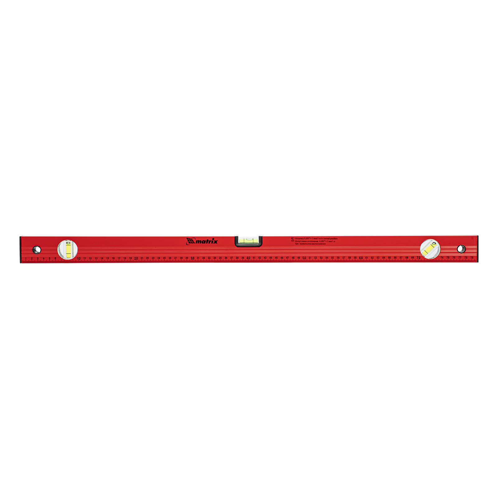 Уровень алюминиевый, 800 мм, 3 глазка, красный, линейка Matrix в Екатеринбурге