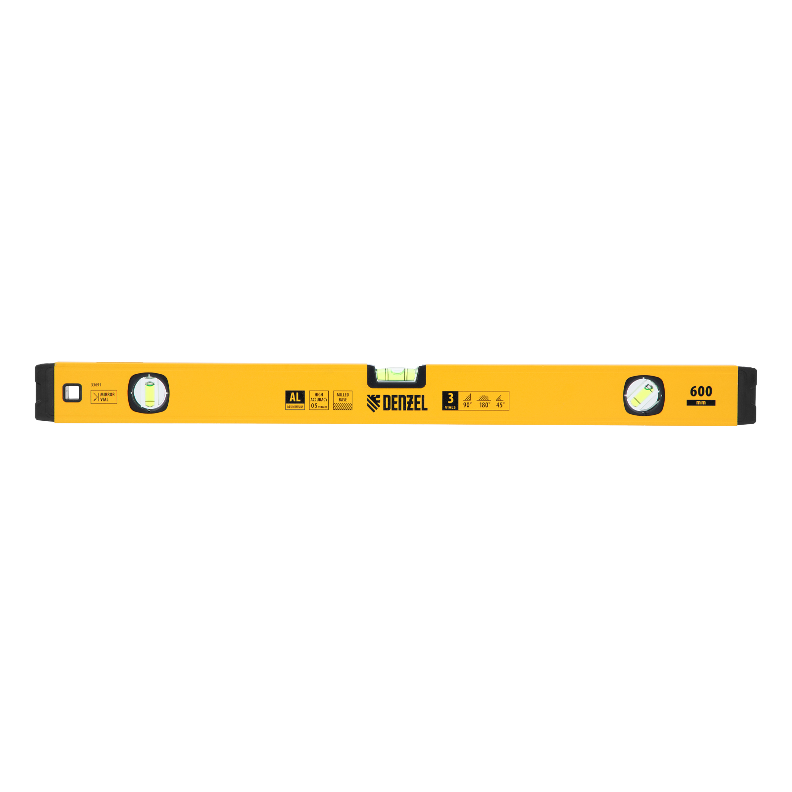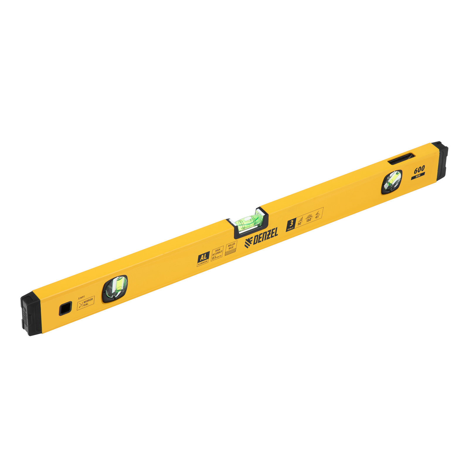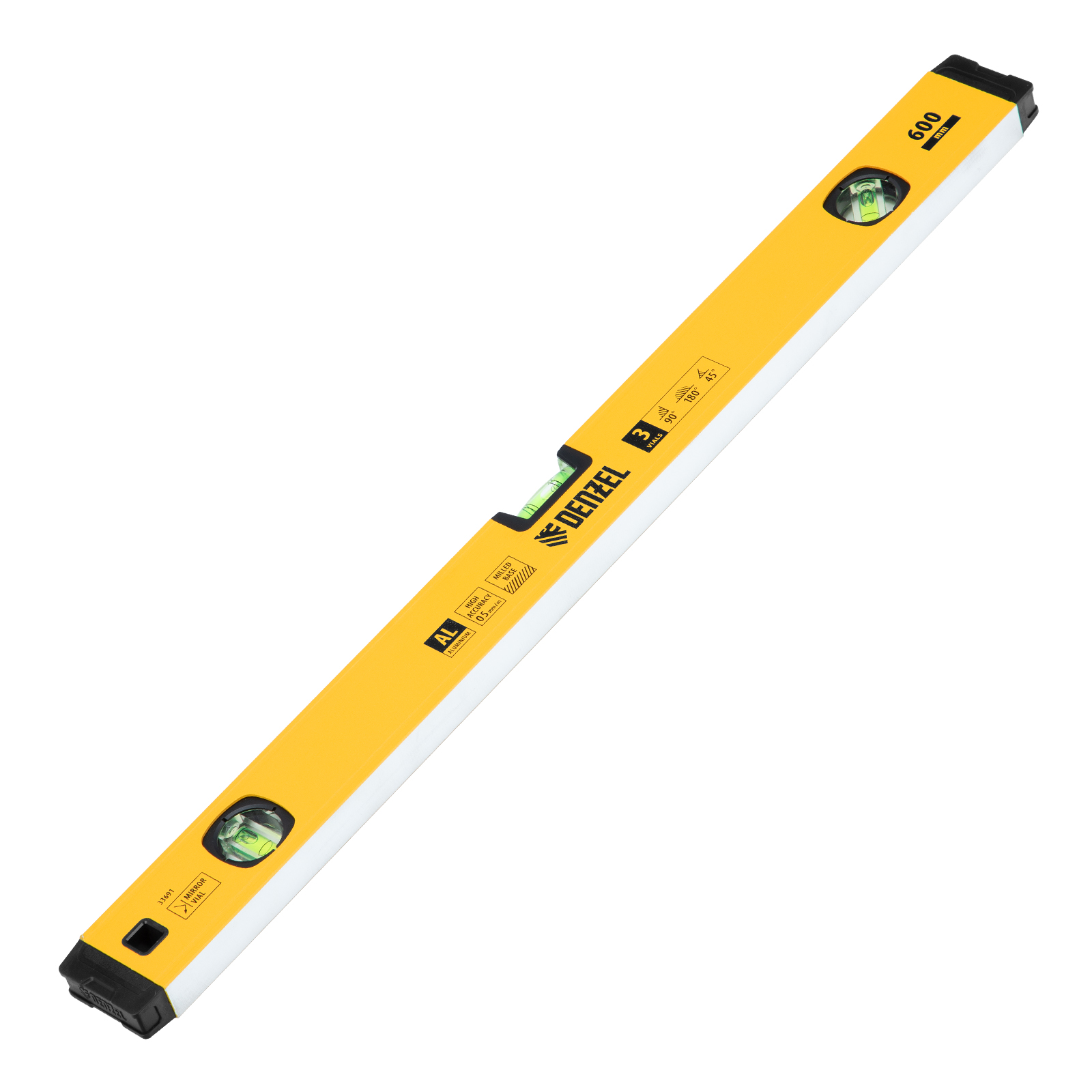 Уровень алюминиевый, магнит, фрезерованный, 3 глазка (1 зеркал.) 0,5 мм/м, 600 мм Denzel в Екатеринбурге