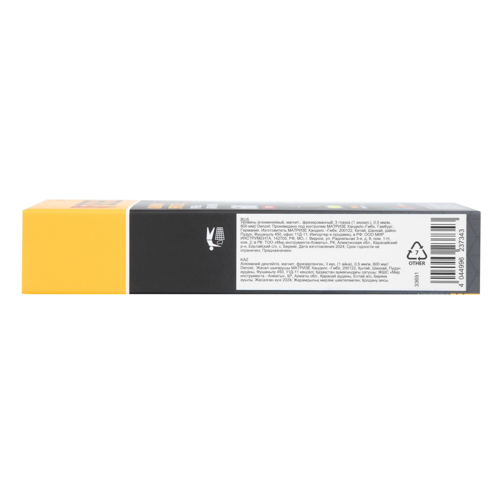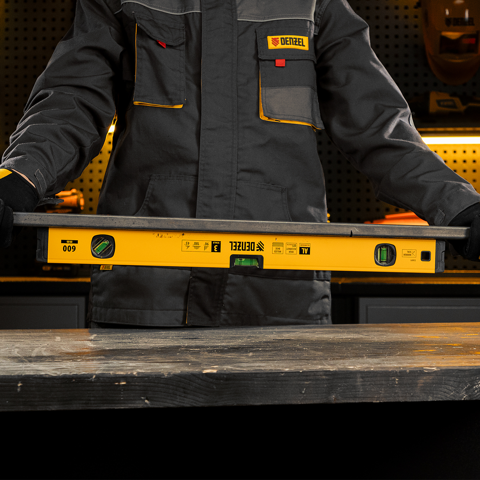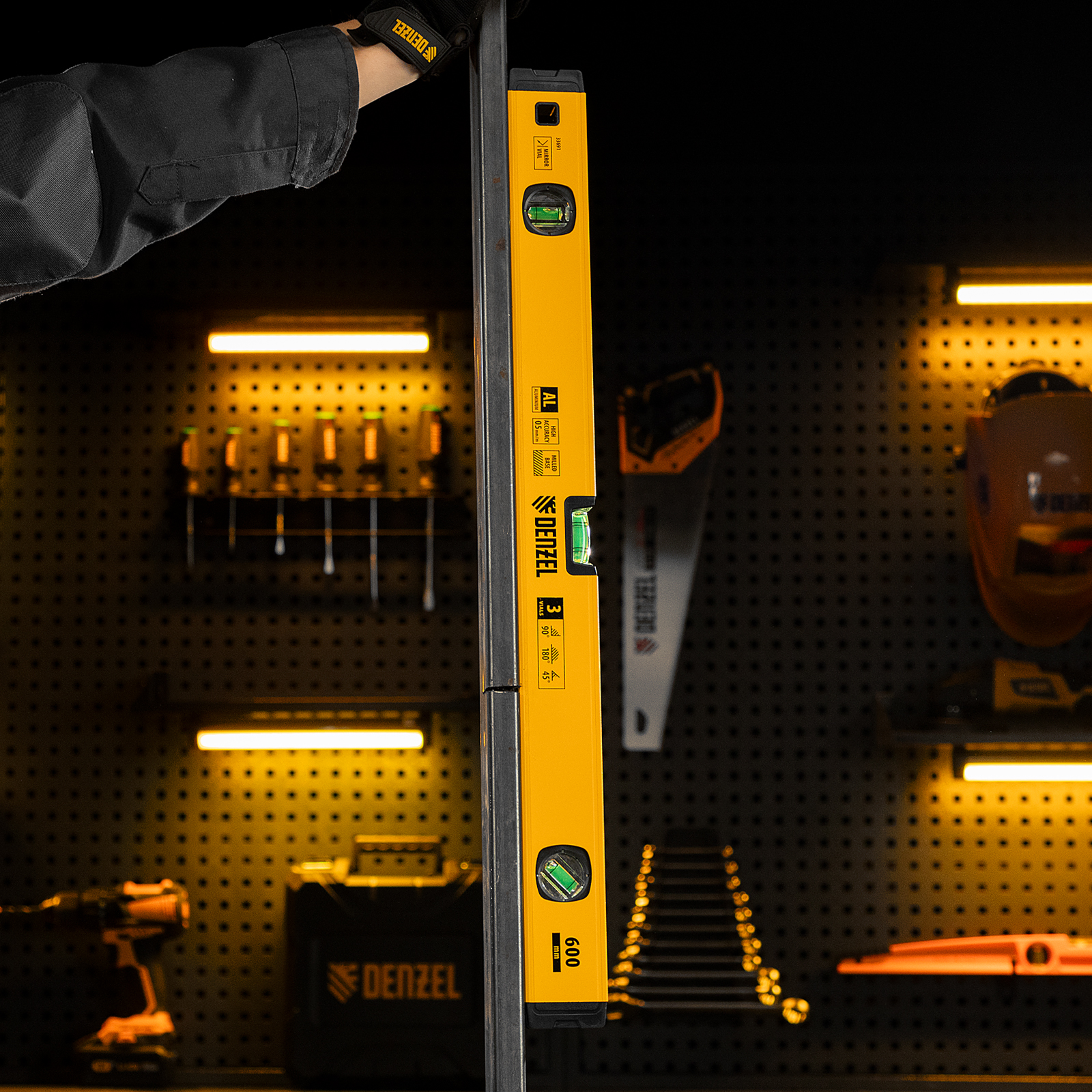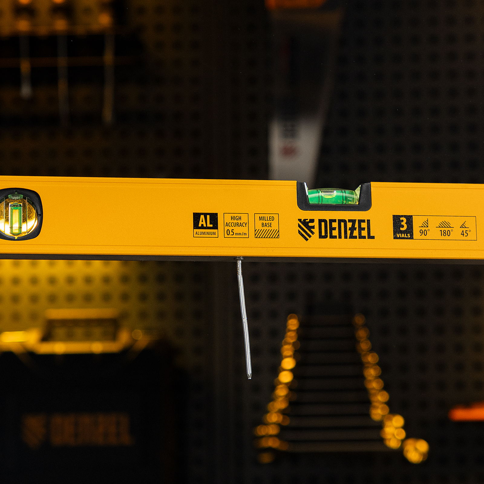 Уровень алюминиевый, магнит, фрезерованный, 3 глазка (1 зеркал.) 0,5 мм/м, 600 мм Denzel в Екатеринбурге