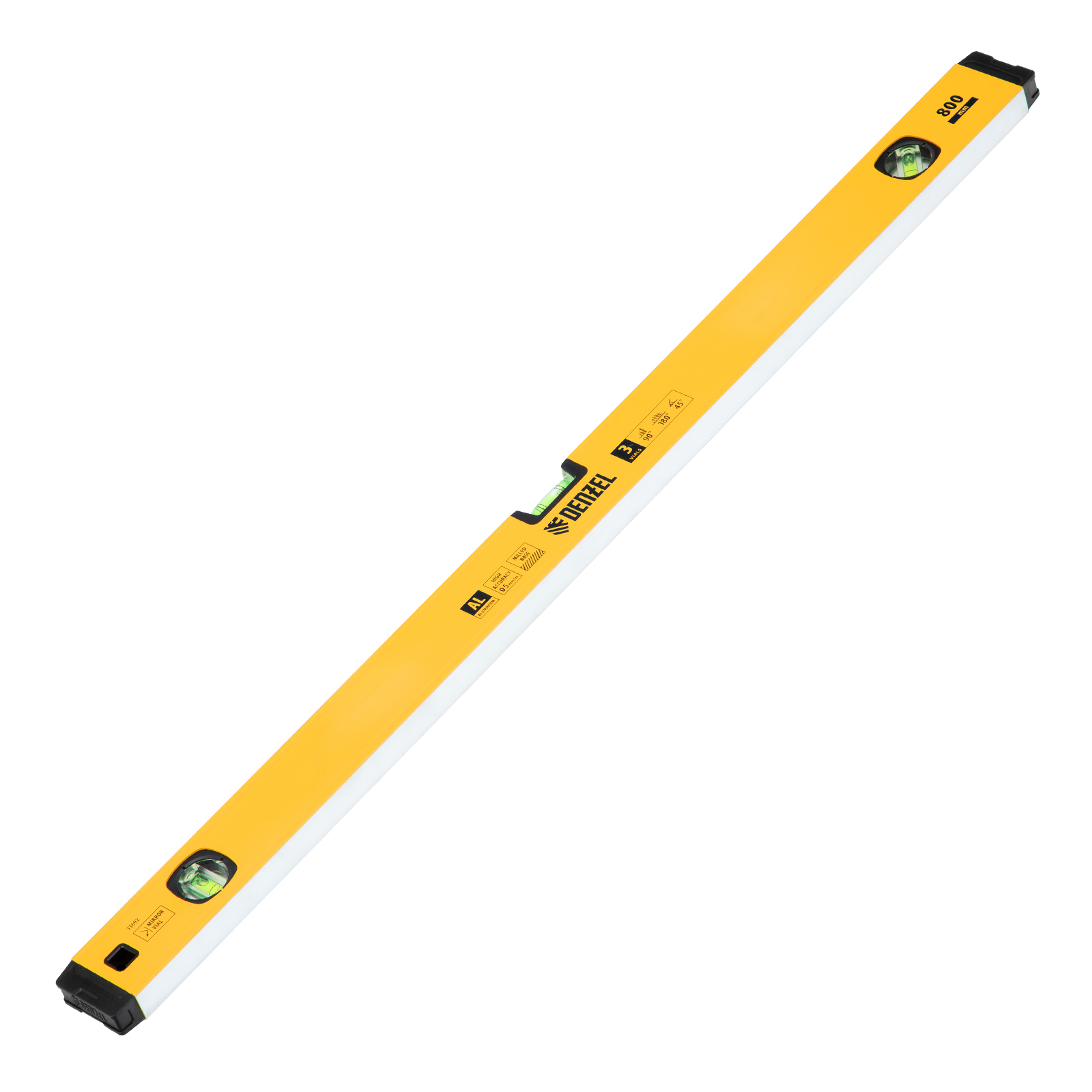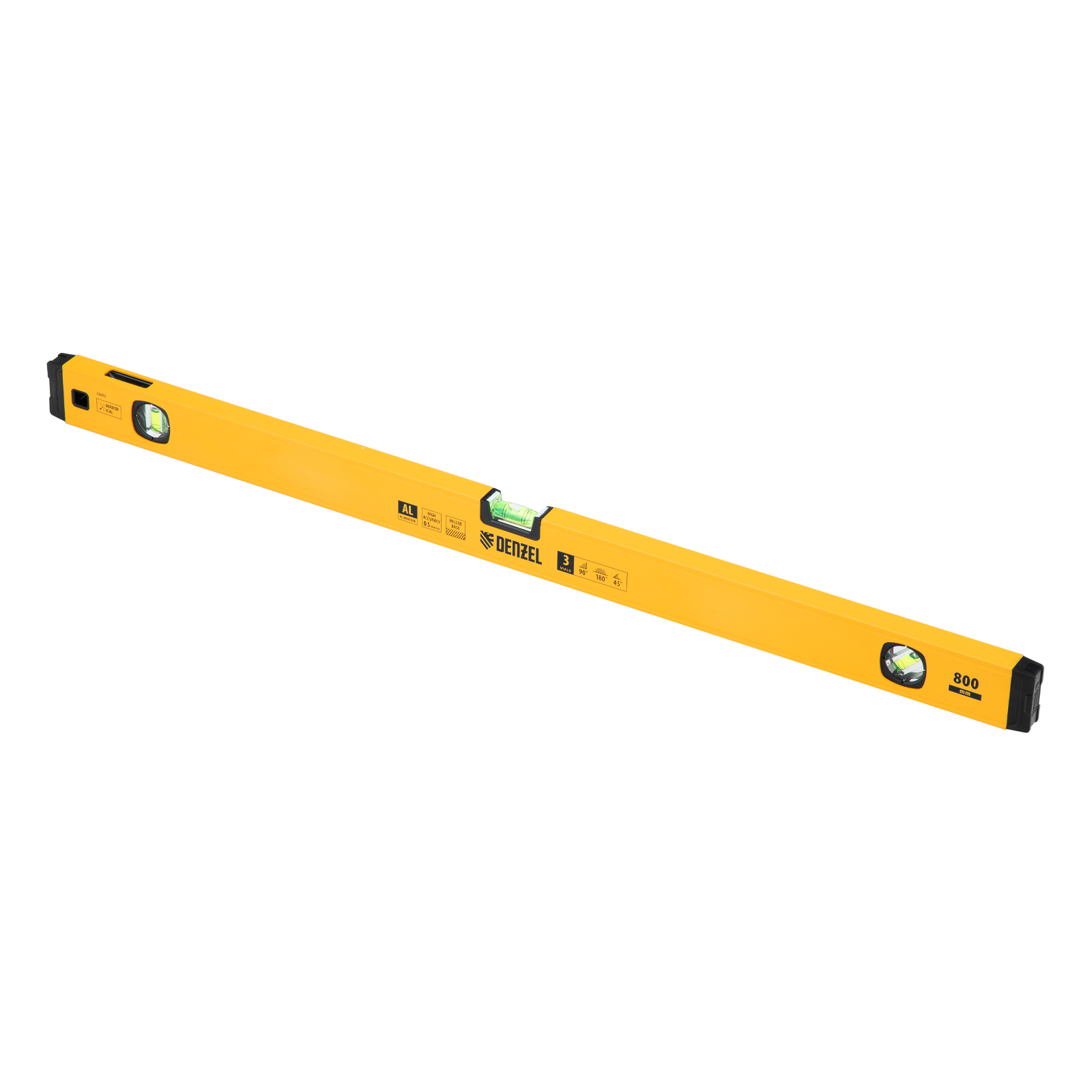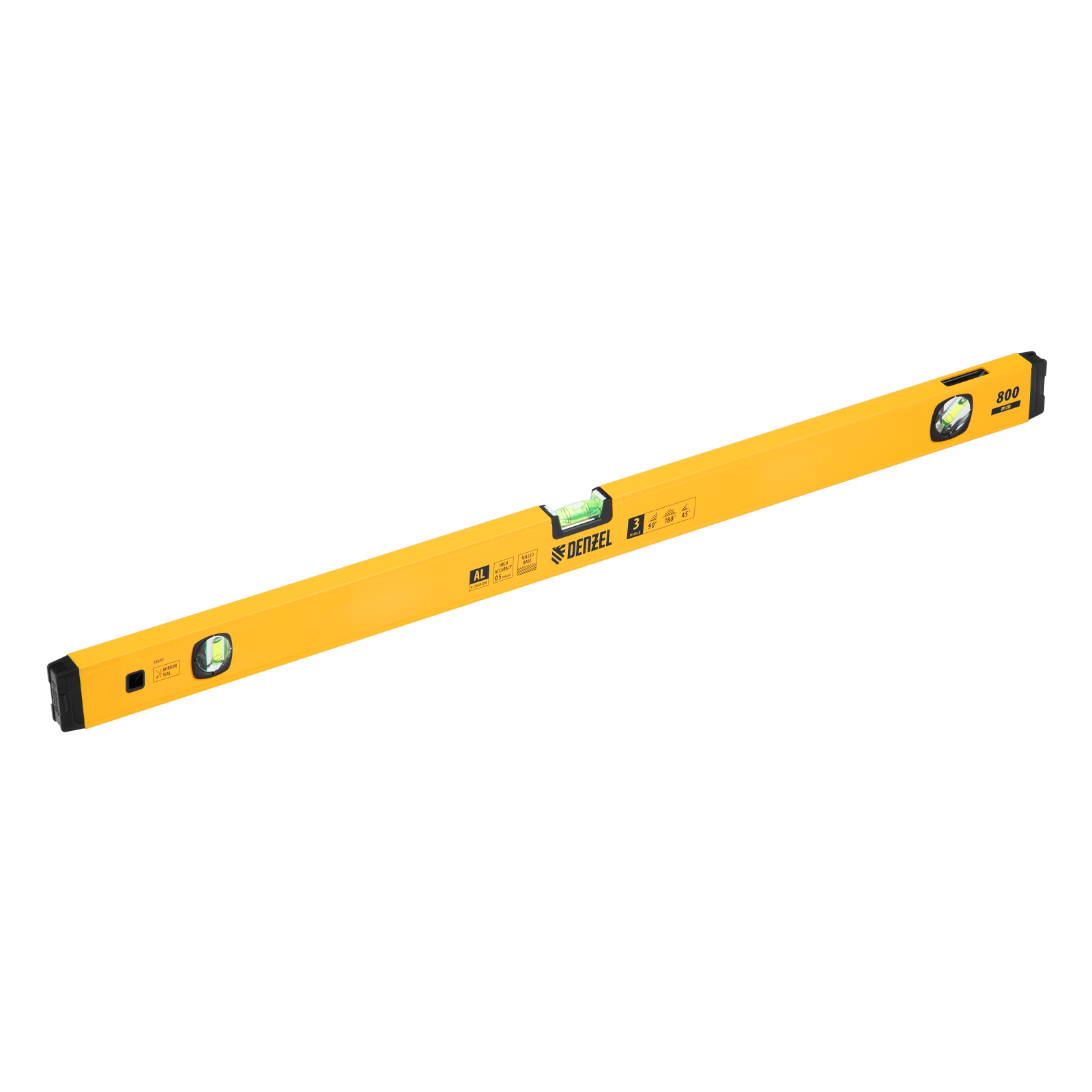 Уровень алюминиевый, магнит, фрезерованный, 3 глазка (1 зеркал.) 0,5 мм/м, 800 мм Denzel в Екатеринбурге