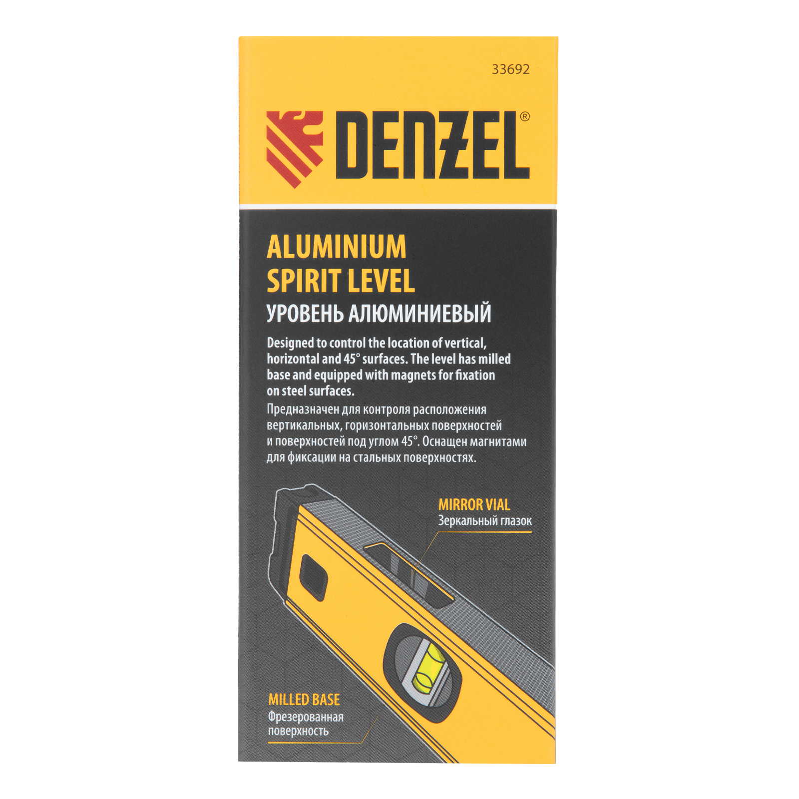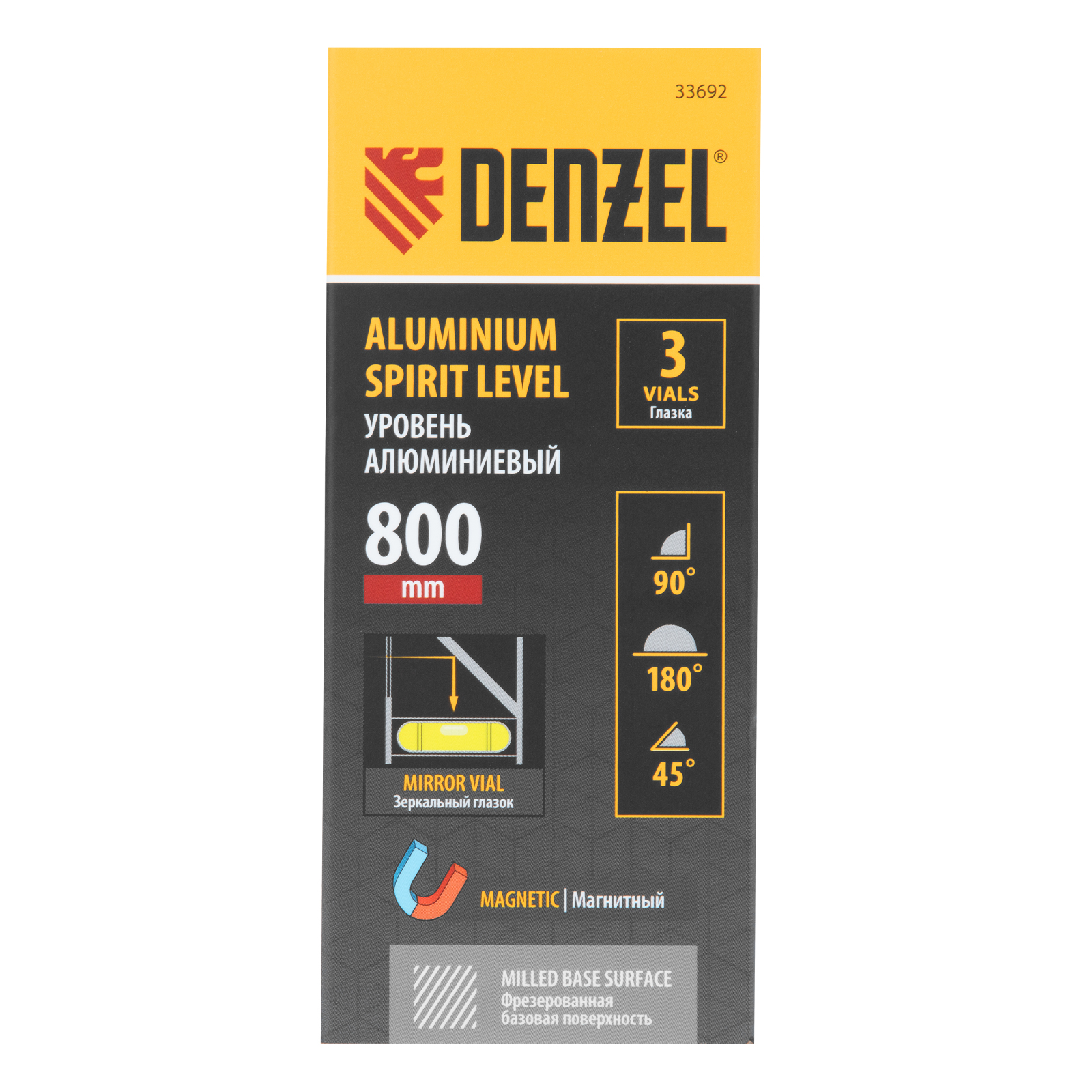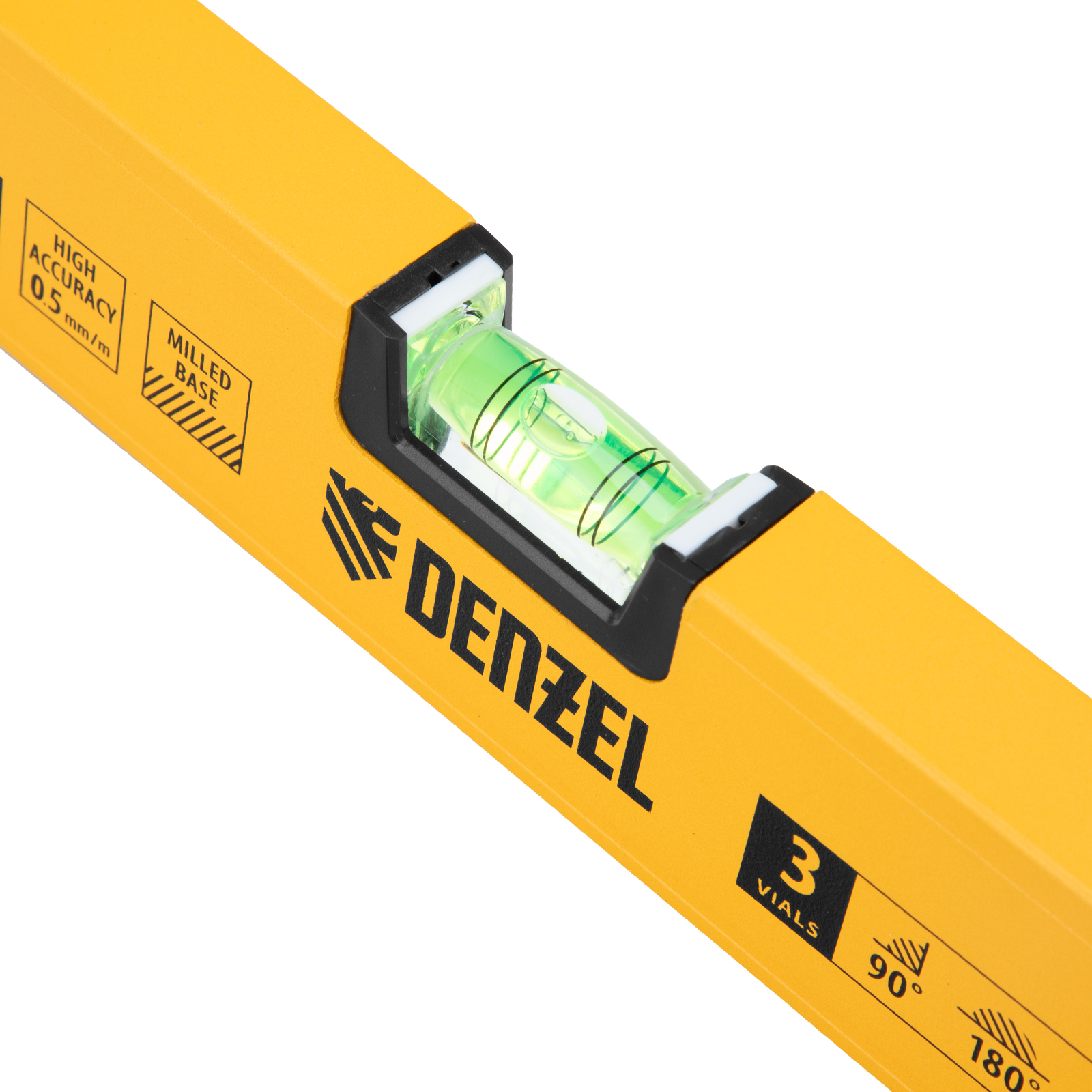 Уровень алюминиевый, магнит, фрезерованный, 3 глазка (1 зеркал.) 0,5 мм/м, 800 мм Denzel в Екатеринбурге