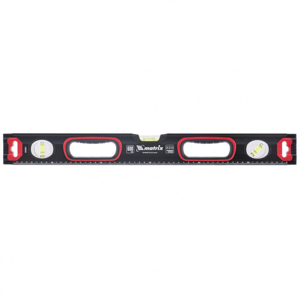 Уровень алюминиевый усиленный Matrix 34364 длиной 1200 мм, фрезерованный, с 3 глазками и двухкомпонентными рукоятками, служит для проверки горизонтальных, вертикальных поверхностей, а также точности угла 45°. Пригодится частному мастеру и профессионалу для проведения строительных, ремонтных и монтажных работ.