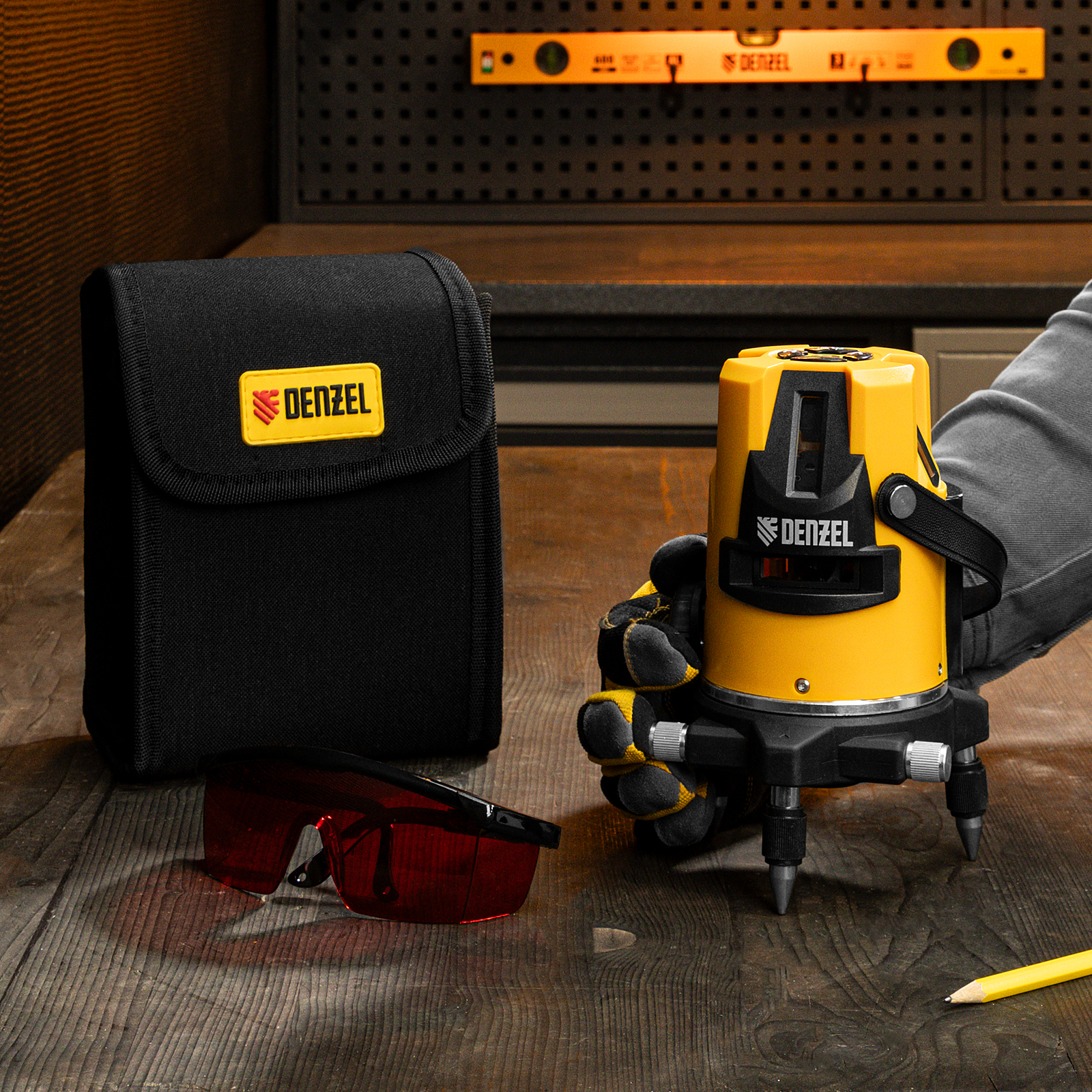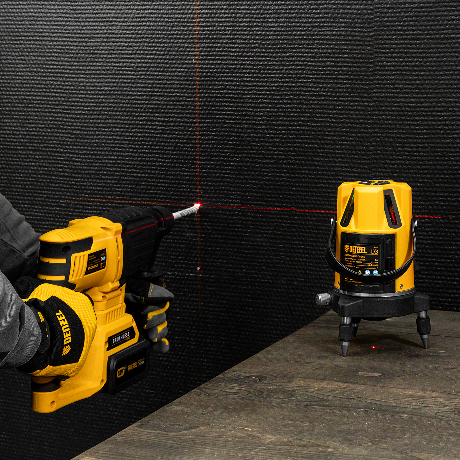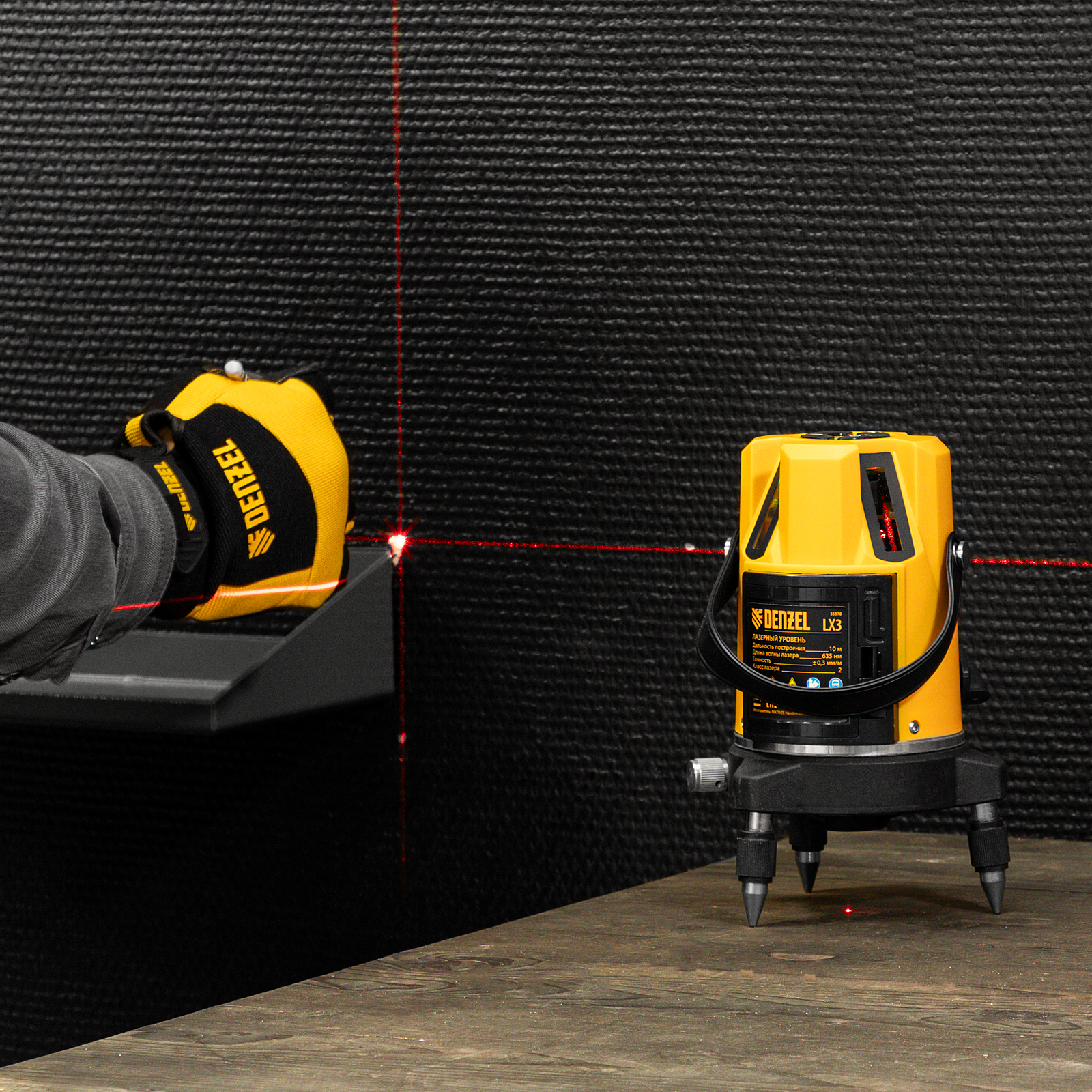 Лазерный уровень LX3, 10 м, ± 0,3 мм/1 м, 635 нм, 4 вертикальных, 1 горизонтальная плоскости, резьба 5/8" Denzel в Екатеринбурге