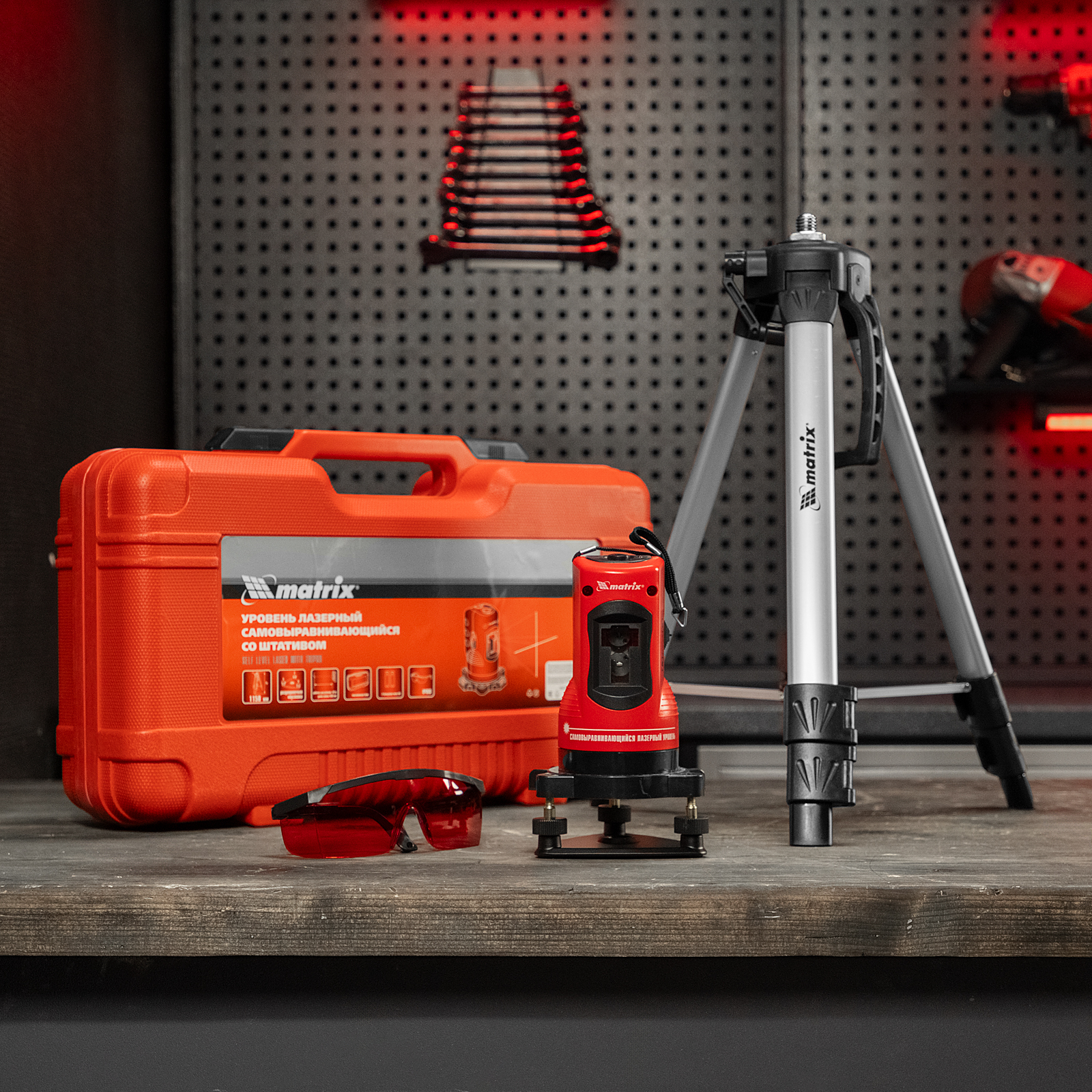Лазерный уровень самовыравнивающийся, 150 мм, штатив 1150 мм, набор в пластиковом кейсе Matrix в Екатеринбурге