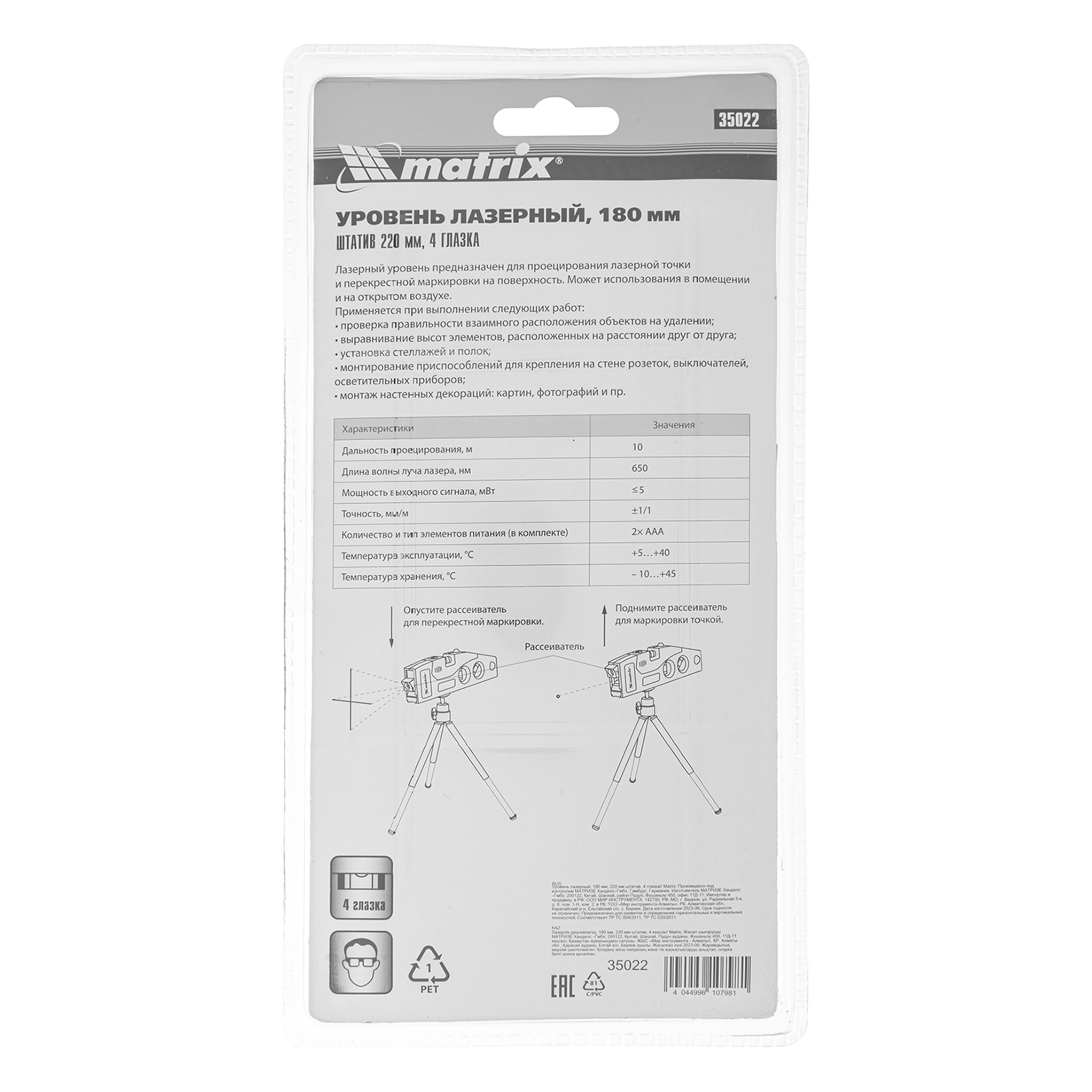 Лазерный уровень, 180 мм, 220 мм штатив, 4 глазка Matrix в Екатеринбурге