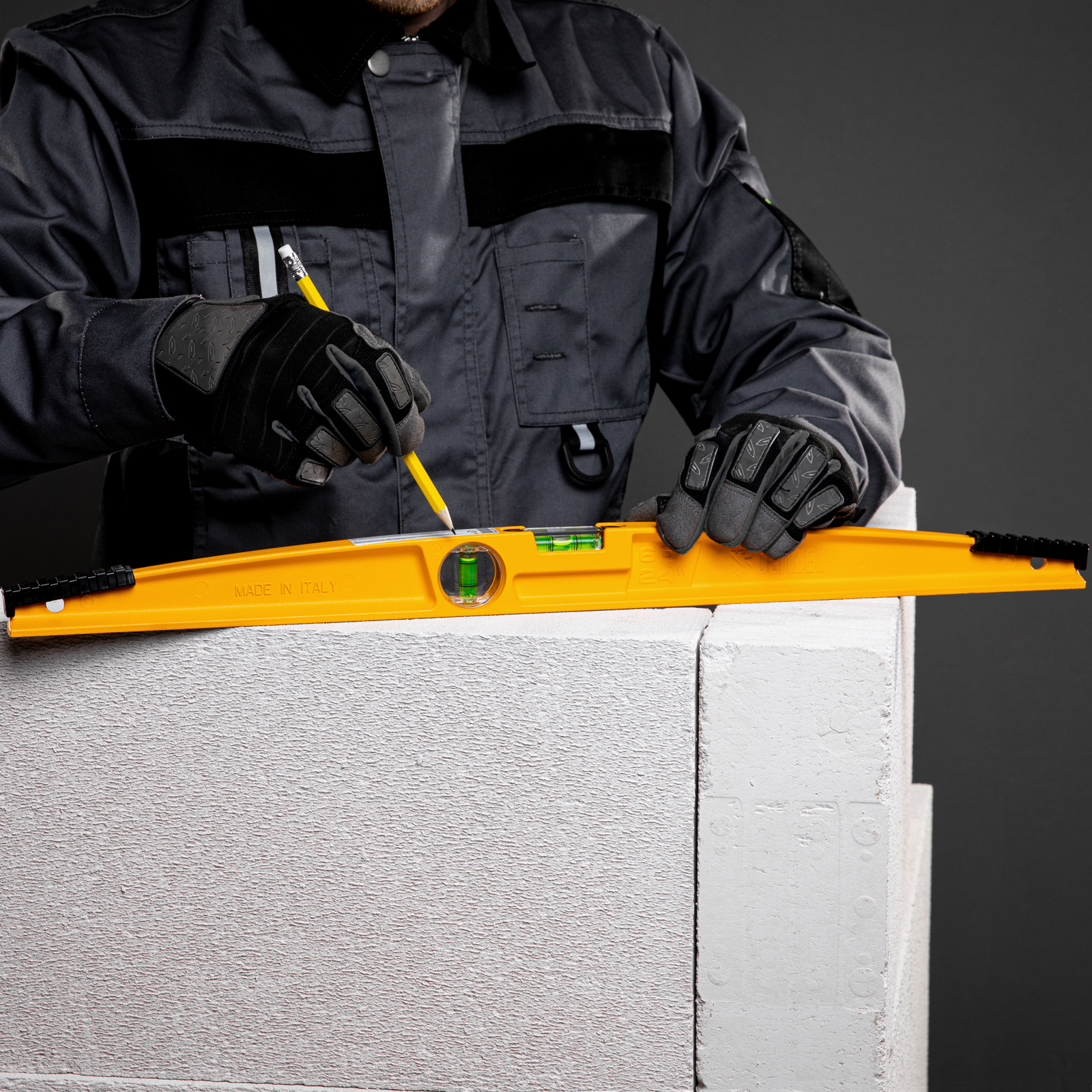 Литой уровень Denzel 34935 длиной 600 мм, с 2 глазками и ударными площадками, поможет выполнить максимально точные измерения в горизонтальной и вертикальной плоскостях. Благодаря инструменту значительно ускоряется и упрощается монтаж конструкций, укладка плитки, брусчатки и т.д.,Для определения отклонения вертикали 90 градусов необходимо использовать пузырьковую ампулу только в верхнем положении уровня. Только базовая поверхность является рабочей (противоположная ампуле 180 градусов).