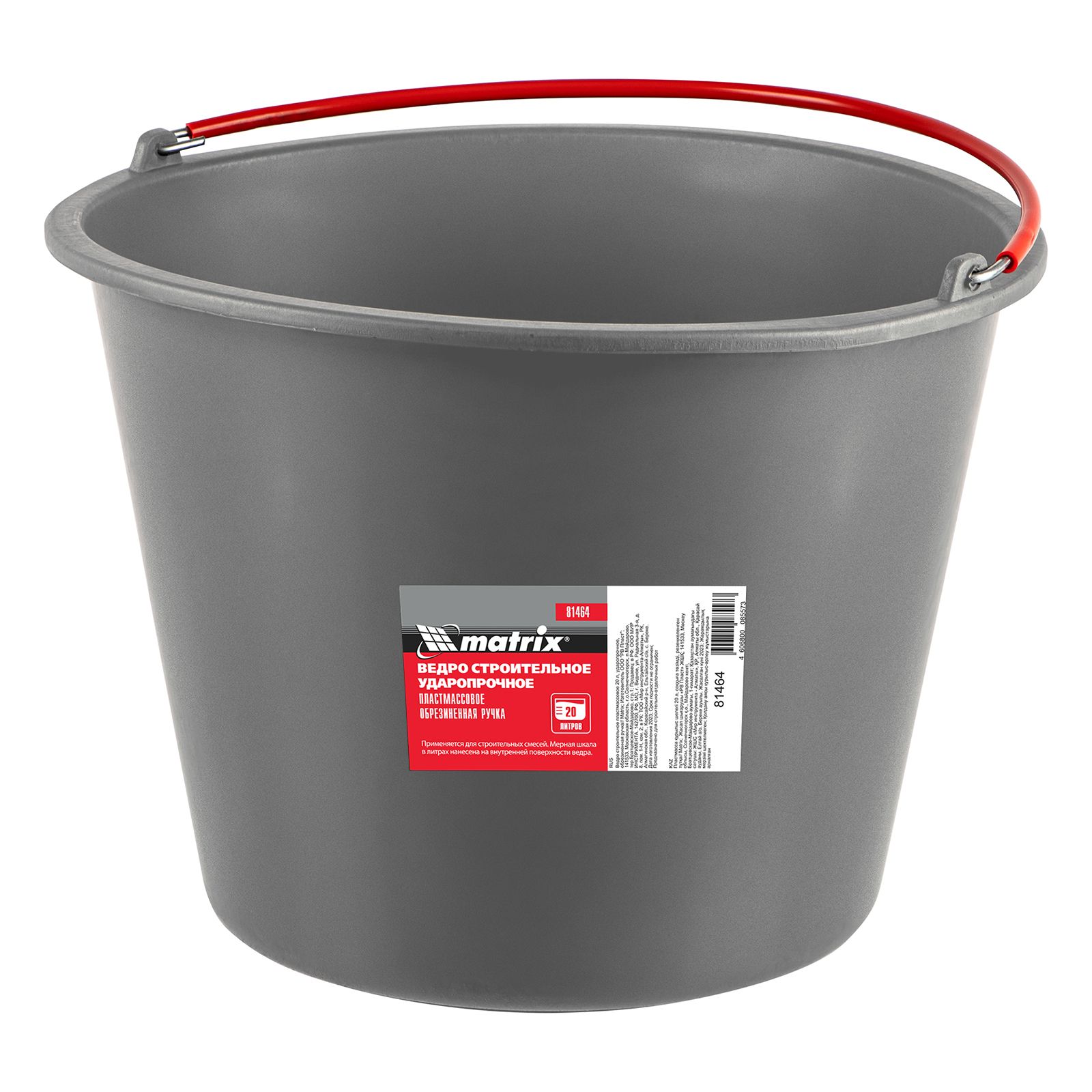 Ведро строительное пластмассовое 20 л, ударопрочное, обрезиненная ручка Matrix в Екатеринбурге