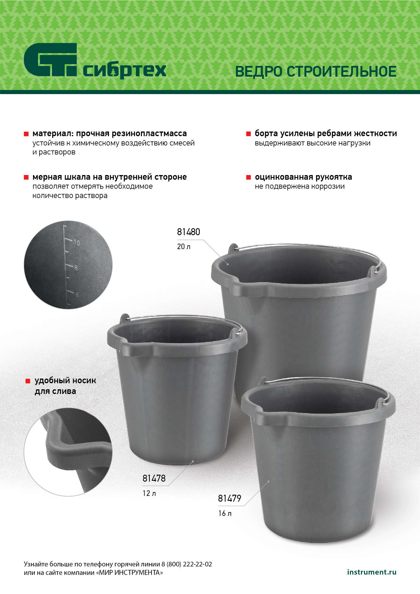 - Комфортное использование — мерная шкала на внутренней стороне ведра позволяет отмерять необходимое количество раствора, для аккуратного слива предусмотрен удобный носик.