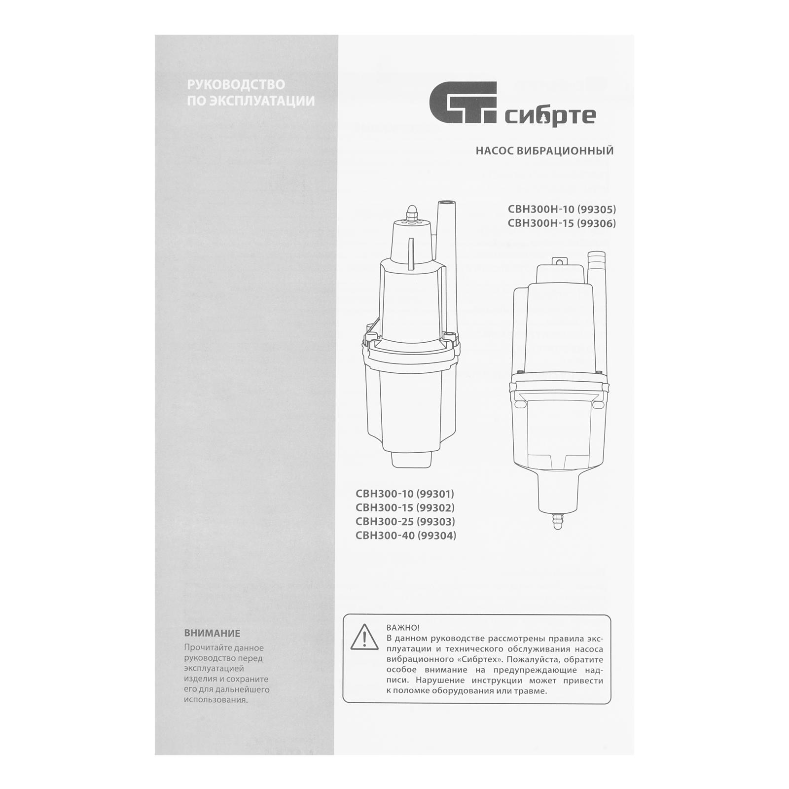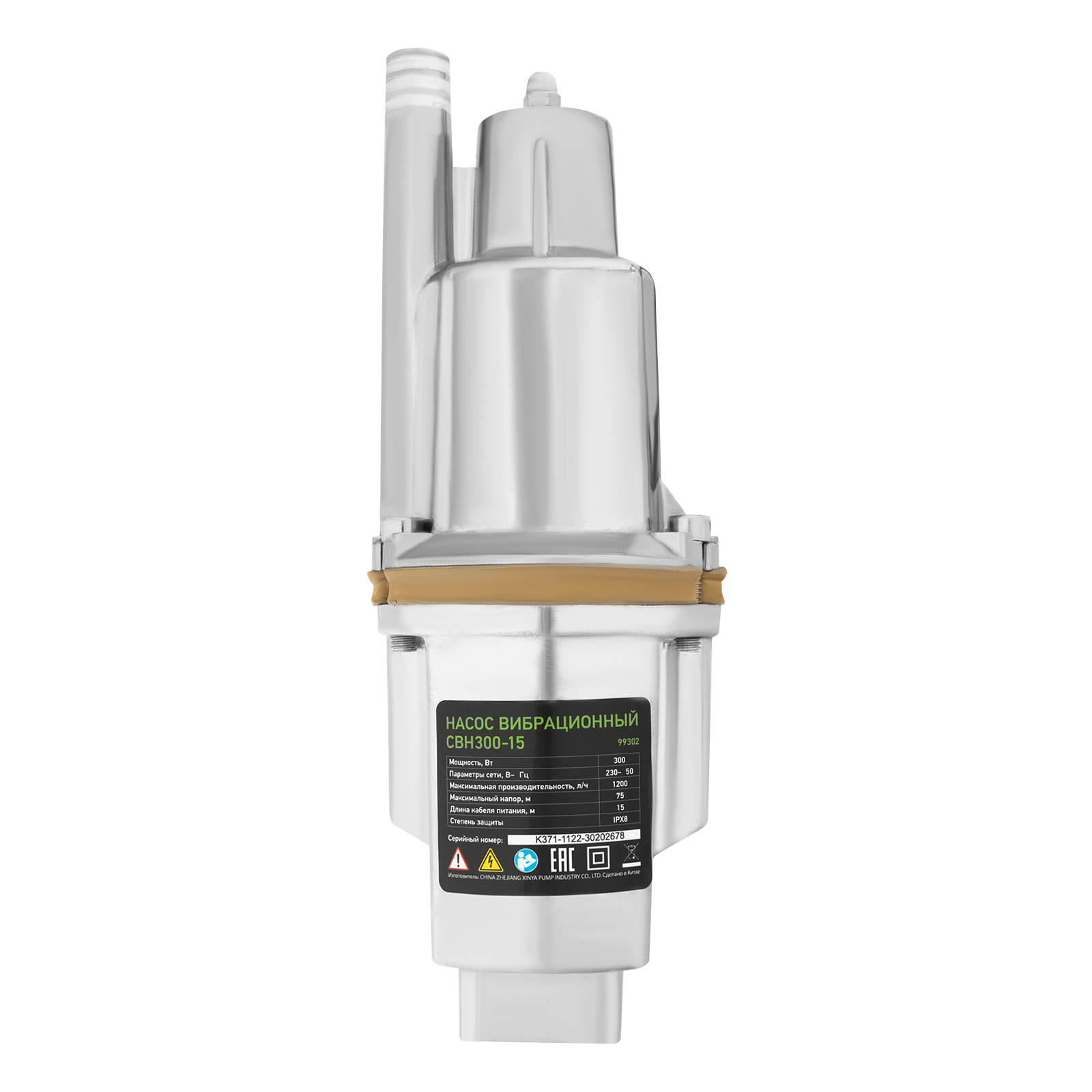 Вибрационный насос СВН300-15, верхний забор, 300 Вт, напор 75 м, 1200 л/ч, кабель 15 м Сибртех в Екатеринбурге