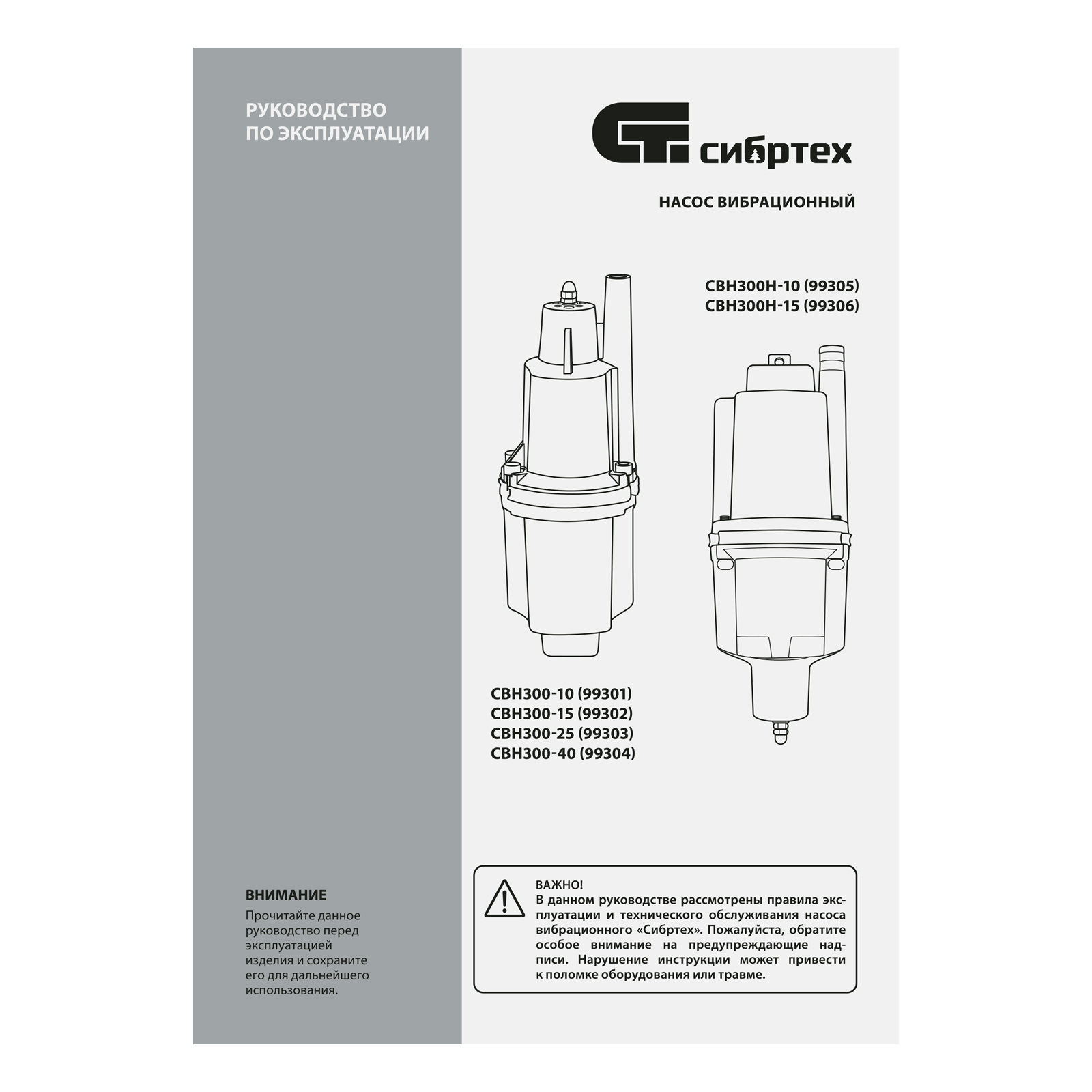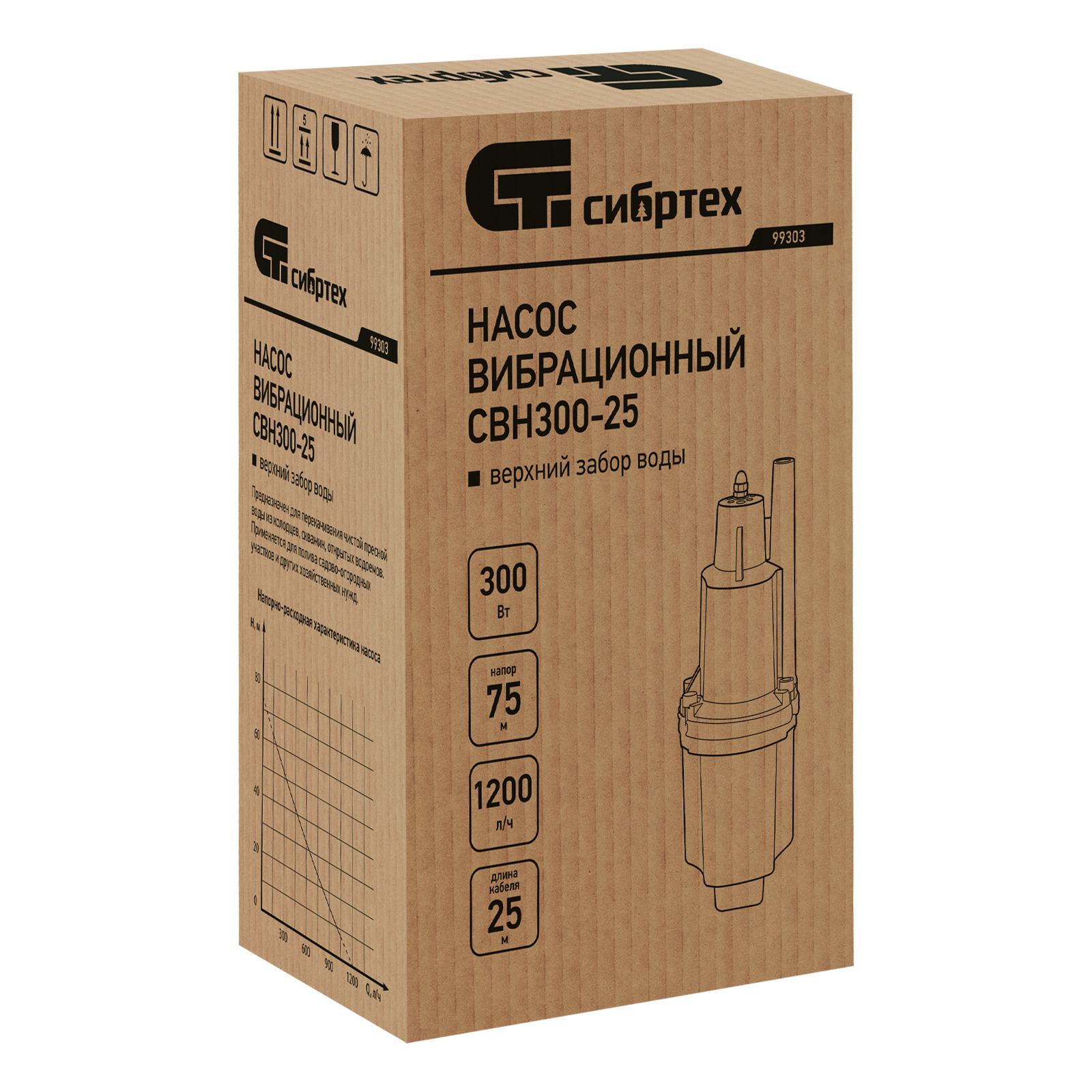 Вибрационный насос СВН300-25, верхний забор, 300 Вт, напор 75 м, 1200 л/ч, кабель 25 м Сибртех в Екатеринбурге