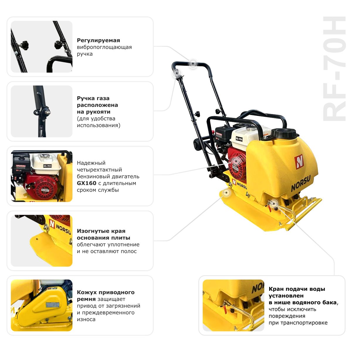 Виброплита бензиновая прямоходная NORSU RF-70TH (колесный комплект, бак для воды) в Екатеринбурге