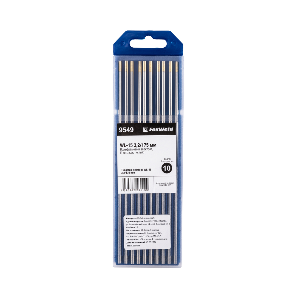 Вольфрамовый электрод WL-15 3,2мм / 175мм (1шт. золотистый) FoxWeld в Екатеринбурге