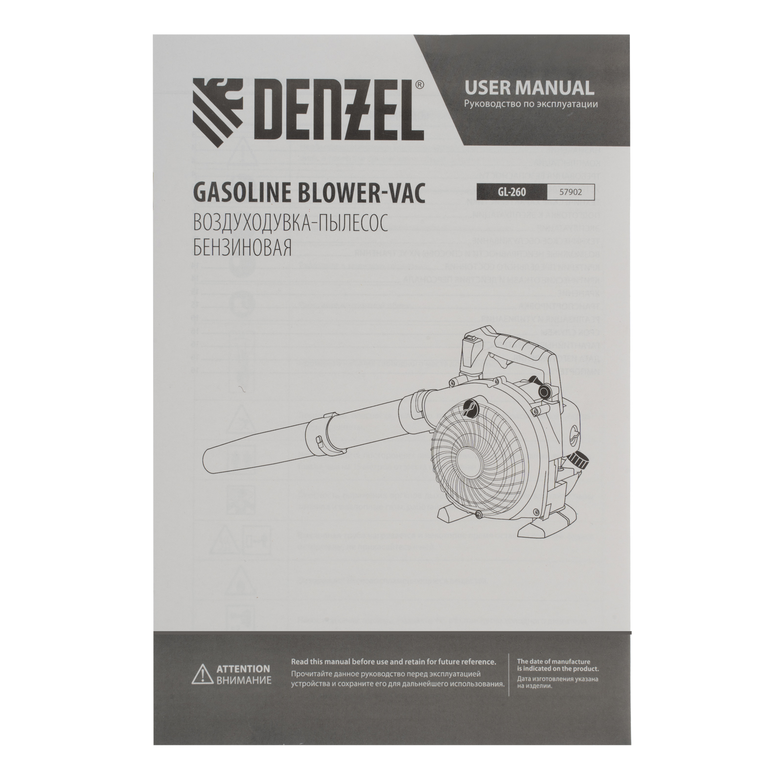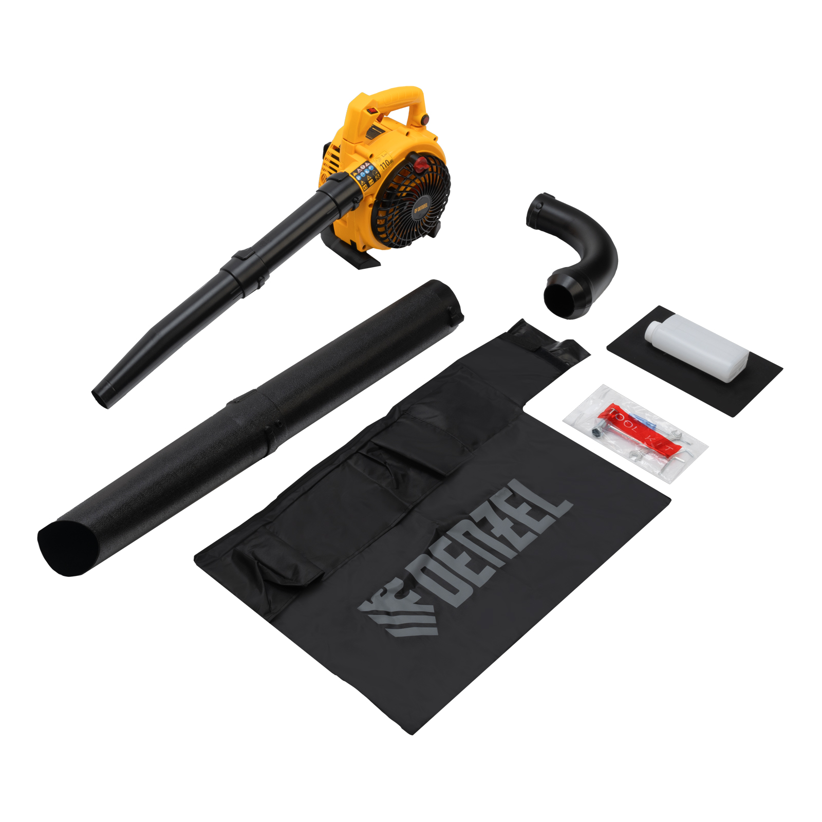 Воздуходувка-пылесос бензиновая - 1 штТруба напорная (из двух частей: тип А и тип В) - 1 штТруба всасывающая (из двух частей: тип С и тип D) - 1 штТруба разгрузочная - 1 штНабор инструментов - 1 штДозатор для приготовления смеси - 1 штМешок для мусора с ремнем - 1 штРуководство пользователя с гарантийным талоном - 1 шт |