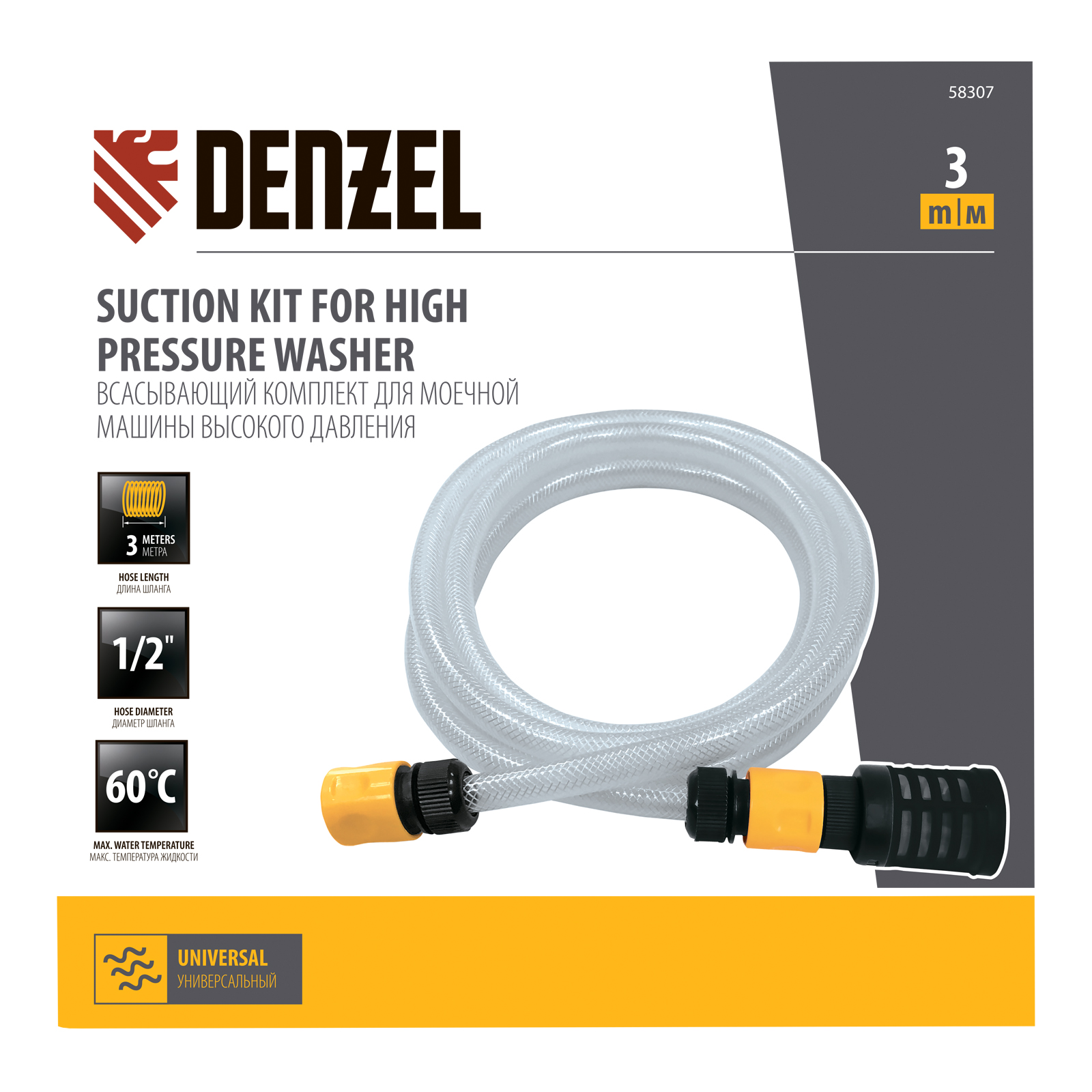 Всасывающий комплект для моечных машин высокого давления, 3 м, диаметр шланга 1/2 дюйм Denzel в Екатеринбурге