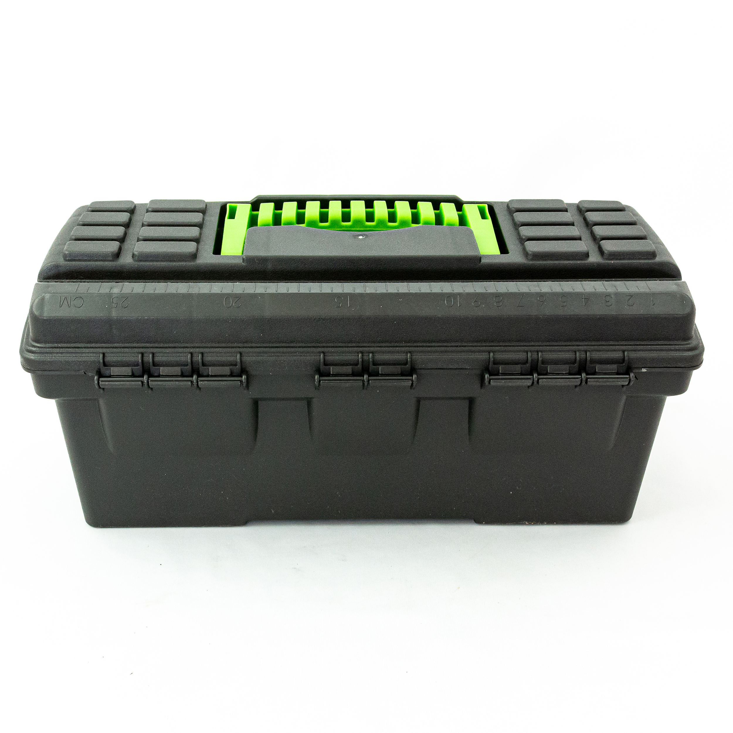 Ящик для инструмента Сибртех 90803 из пластика, размером 324 х 165 х 137 мм (длина 13"), — удобное вместилище для инструментов, бытовых мелочей, рыболовных снастей. На крышку нанесена измерительная шкала в сантиметрах и дюймах, поэтому можно проводить измерения, даже если под рукой нет линейки. Ящик пригодится в поездке, на рыбалке, а также дома, на даче или в гараже.