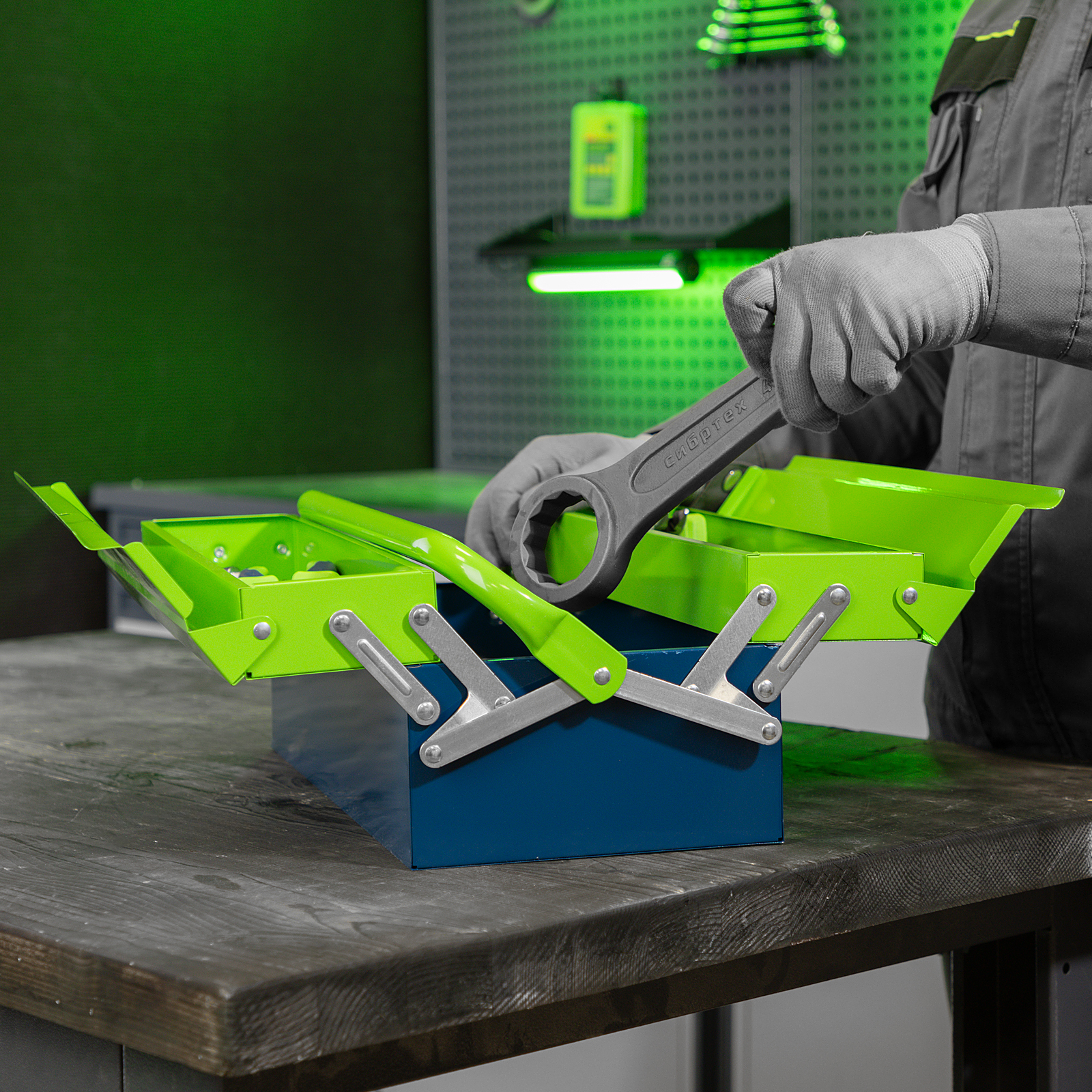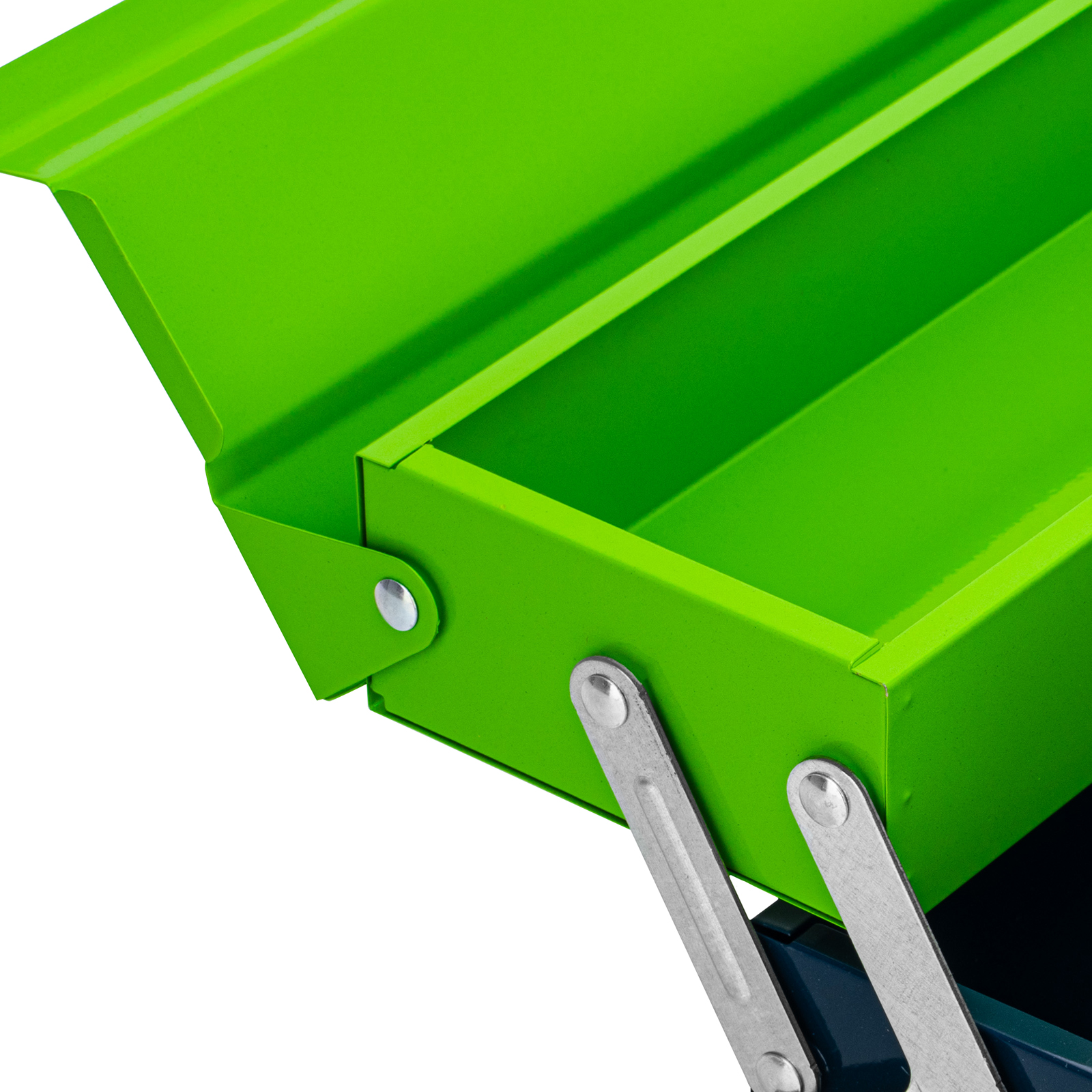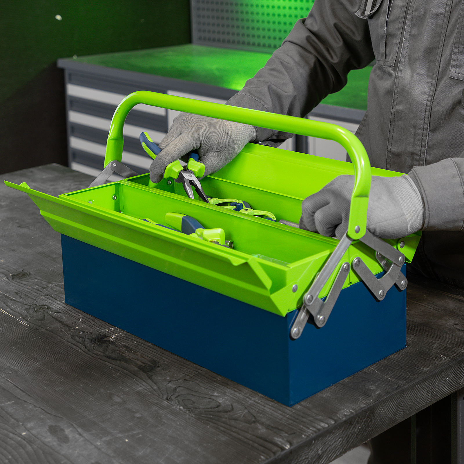 Металлический ящик Сибртех 90750 размером 430 х 200 х 160 мм, с тремя секциями, используется для размещения инструментов, хозяйственных мелочей, крепежных элементов или рыболовных принадлежностей. Предметы удобно раскладываются по отделениям, что обеспечивает порядок во время их хранения и транспортировки. Ящик пригодится в поездке, на рыбалке, а также дома, на даче или в гараже.