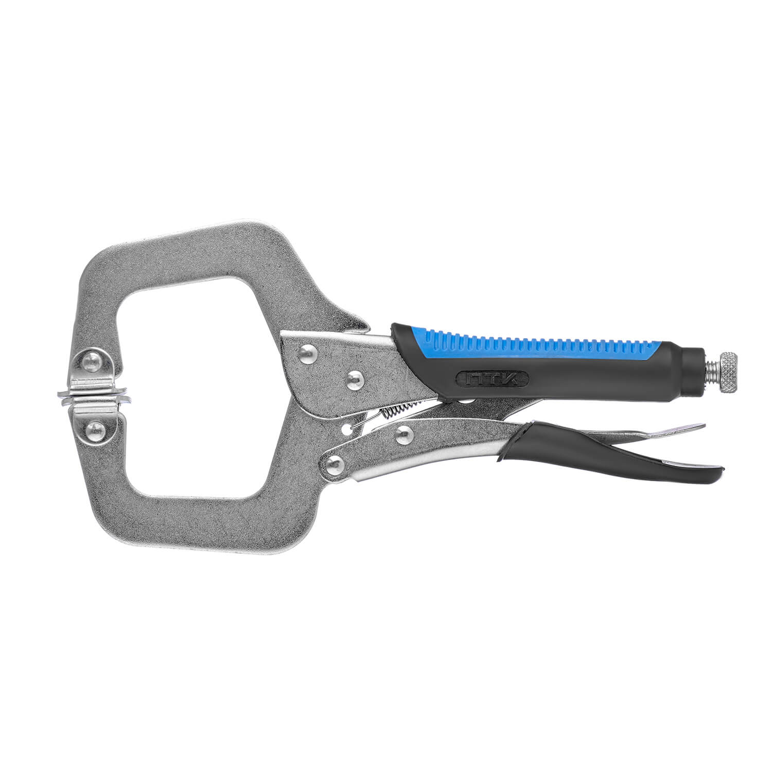 Зажим с подвижными губками и винтом, который расположен на рукоятке и обеспечивает надежную фиксацию.