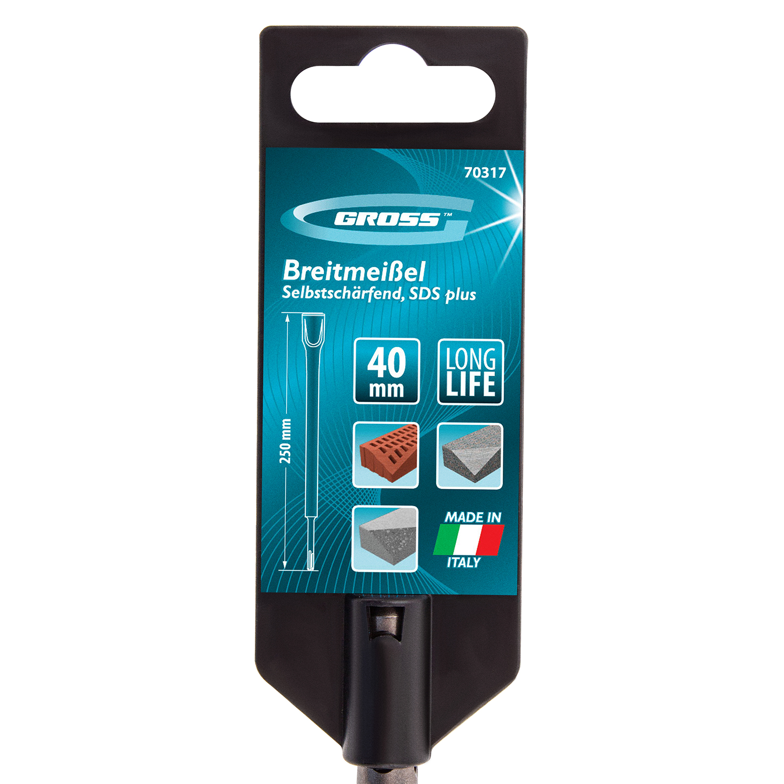 Лопаточное зубило Gross PRO 70317 размером 40 х 250 мм имеет хвостовик SDS PLUS и используется как оснастка для перфоратора. Предназначено для обработки камня, бетона, кирпича, битума. Зубило лопаточной формы оптимально подходит для проведения демонтажных и долбежных работ, удаления старой отделки и грязевых отложений, выполнения пазов, а также рыхления грунта.